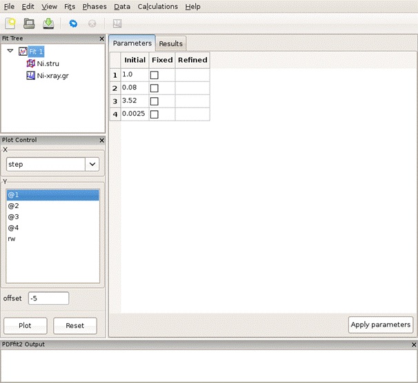 図 5 :フィッティングパラメータの初期値およびrefineの有無を設定。¶